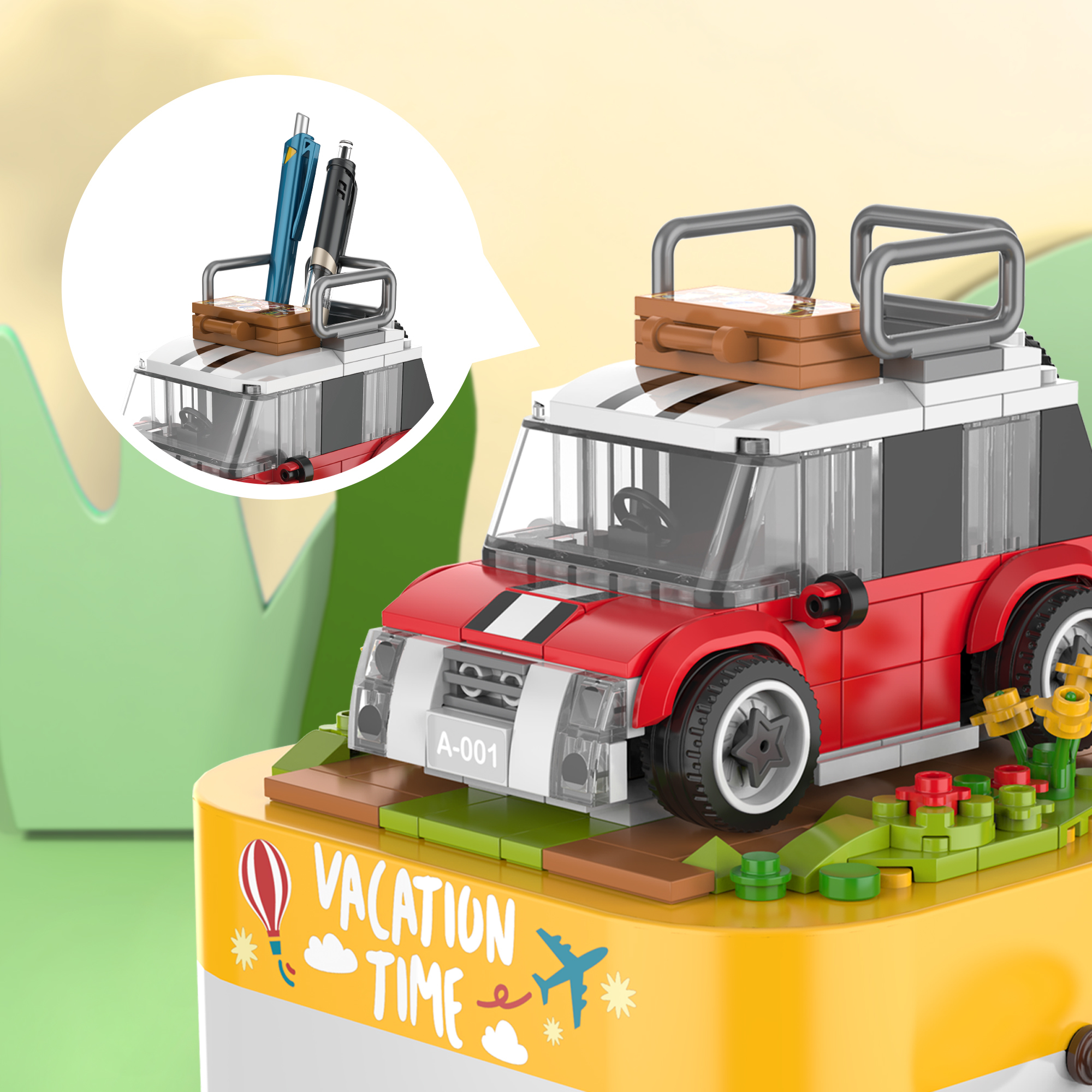 待家良久,遲遲未能游歷世界, 唯有望梅止渴。拼一部紅色小車、架著行李箱、播放著悠然自得的輕快音樂,于綠草小花之間游走,幸福滿滿!
