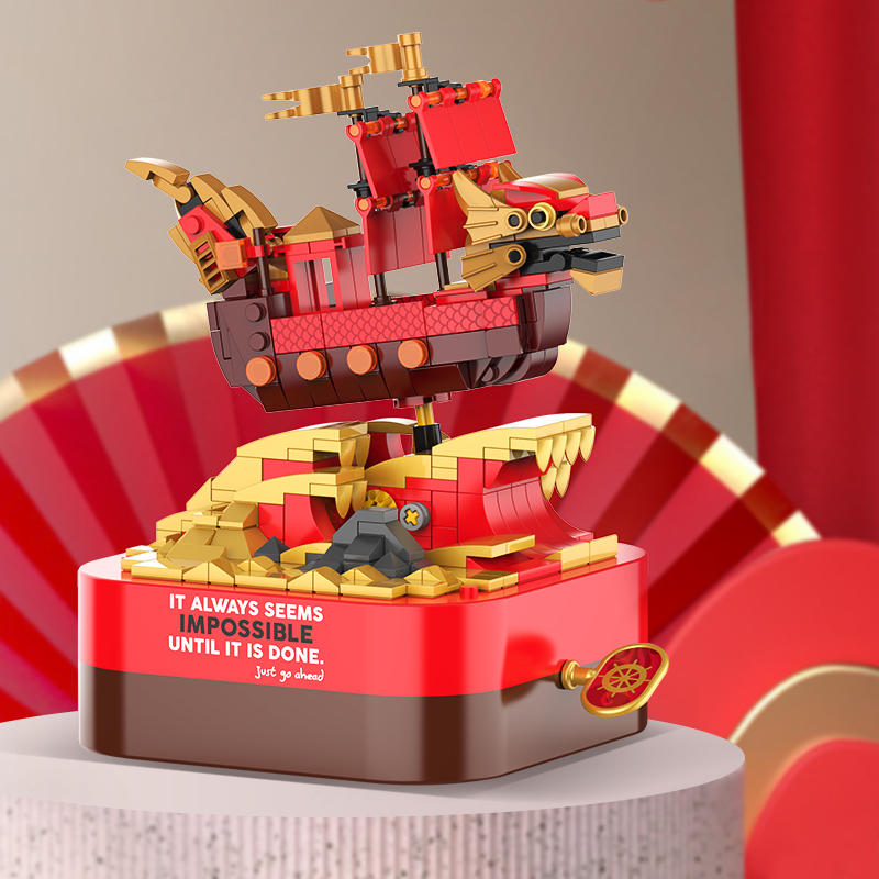 將積木與音樂盒完美結合,好玩又時尚。純機械動力設計更環保,音樂盒發條轉動帶動船兒上下擺動,益智拼搭,時尚美觀,還能充當家居精品擺件。
